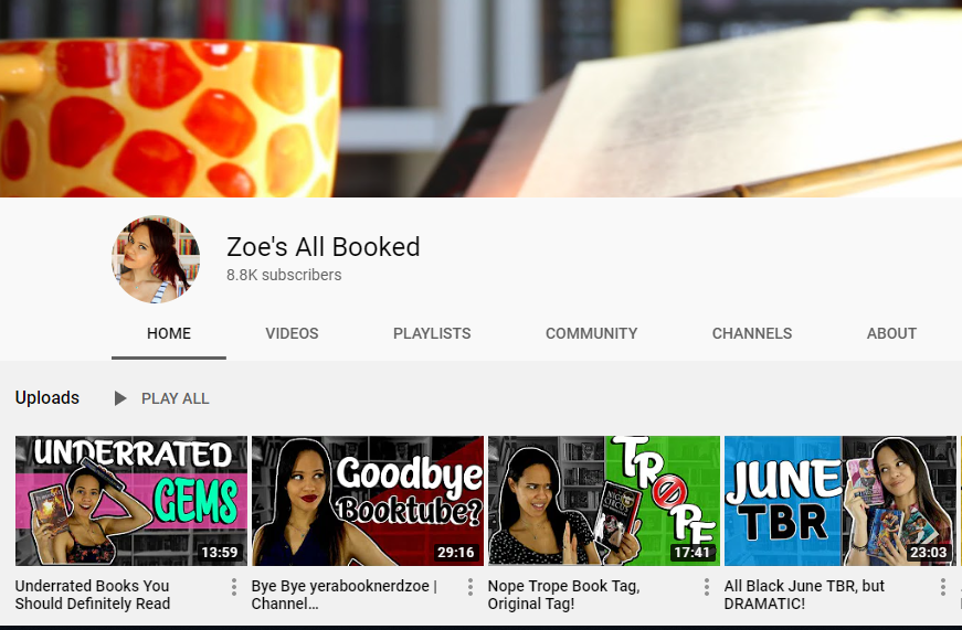 Hi guys! I'm Zoe, a 26-year-old Canadian booktuber who reads way too much! I'm here to talk about books and fangirl with anyone willing.