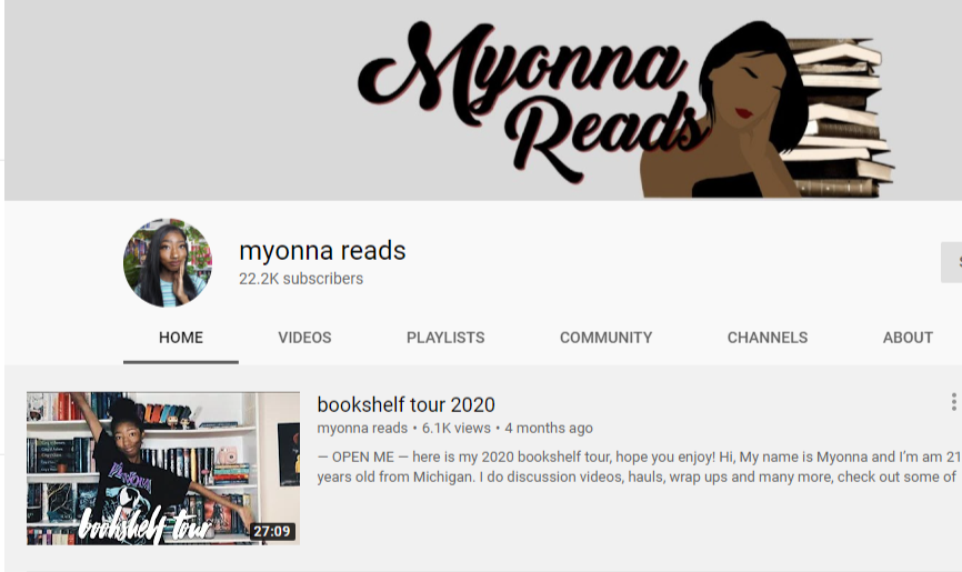 Hi, My name is Myonna and I'm a 21 year old from Michigan. I make videos every week so stay tuned! i will read mostly anything so here you'll find all kinds of reader content. i make creative videos as well as book reviews, hauls and monthly wrap ups.